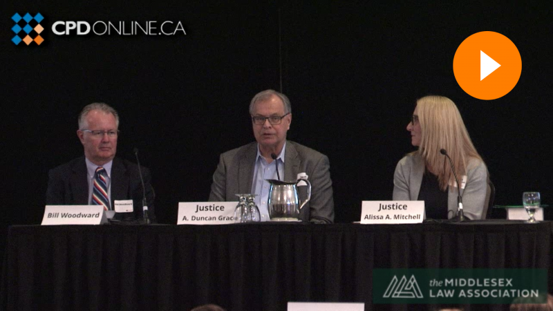In this Middlesex Law Association (MLA) program, Justice Duncan Grace, Justice Alissa Mitchell, and Bill Woodward share advocacy tips for motions, pre-trials, and trials, and also discuss the impact of innovations like SharePoint and CaseLines on the judicial system.
